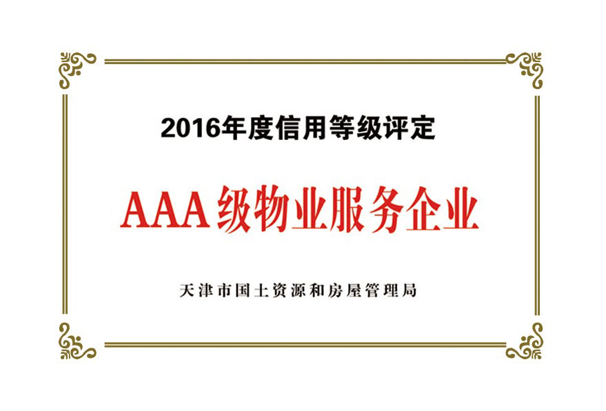 公司目前被授予:中國保安協(xié)會理事單位、物業(yè)管理綜合實力入圍企業(yè)、天津市物業(yè)協(xié)會理事單位、天津市保安協(xié)會常務(wù)理事單位、天津市保潔協(xié)會明星企業(yè)、天津市科技小巨人企業(yè)、天津市科技型企業(yè)、天津市物業(yè)管理企業(yè)優(yōu)秀項目經(jīng)理、企業(yè)信用評價體系A(chǔ)AA級企業(yè)、AAA級誠信經(jīng)營示范單位、AAA級重合同守信用單位、2017年被天津市工商業(yè)聯(lián)合會評為天津市民營企業(yè)促進(jìn)就業(yè)百強(qiáng)企業(yè)、社會捐贈百強(qiáng)企業(yè)、2018年銷售收入百強(qiáng)企業(yè),2020年被天津市退役軍人事務(wù)局評為天津市吸納退役軍人就業(yè)先進(jìn)單位。